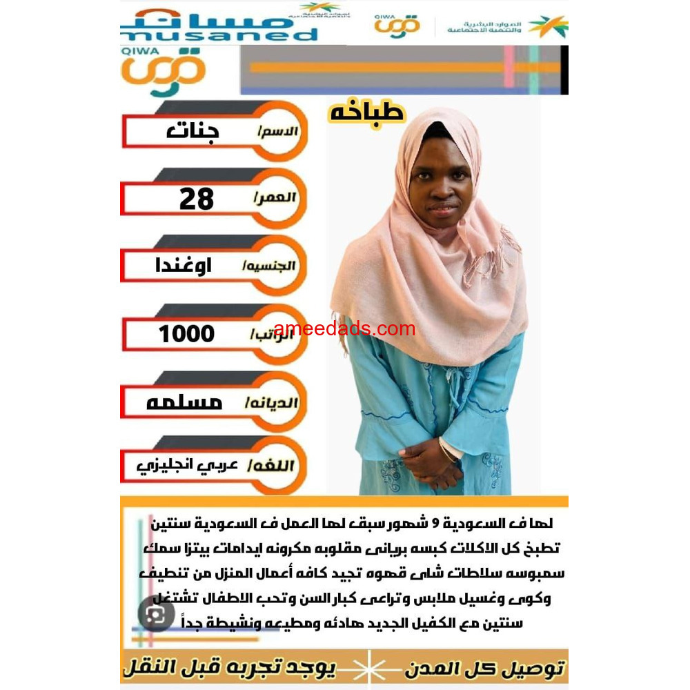 متوفر عماله منزليه وطباخات ومرافقين لكبار السن وعاملات نظافه ومربيات اطفال وكوافيرات وسائقين ومتاح التجربه لكل أنحاء المملكه والتجربة خير برهان 🇸🇦🇸🇦 تواصل علي الواتساب لإرسال السير الذاتيه واتساب wa.me/+966578214529