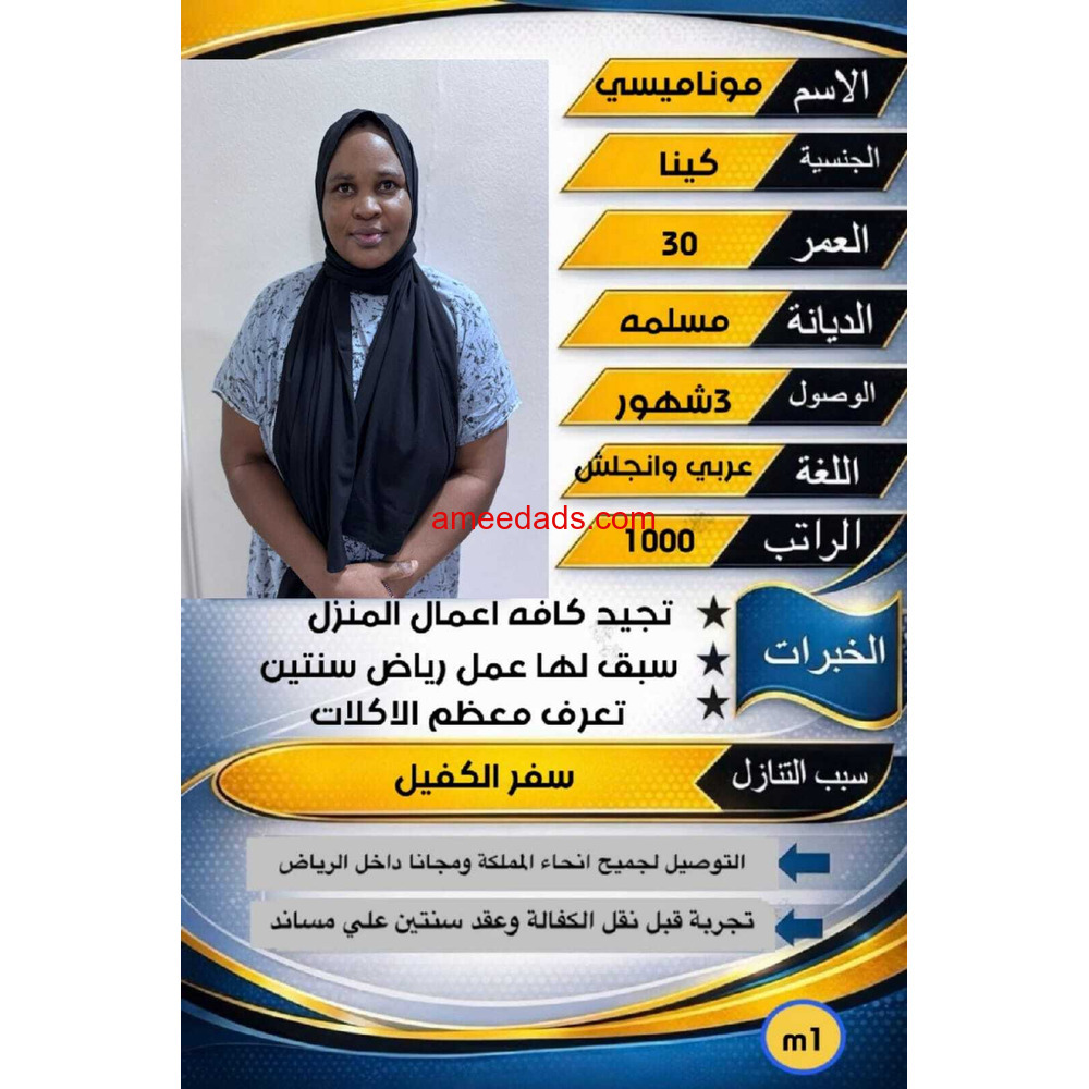 حياكم الله ... نعلن عن وجود عاملات وطباخات ومربيات اطفال للتنازل من جميع الجنسيات(اندونيسيا_فلبين_سيرلانكا_بنجلاديش_كينيا_ا وغندا) علي قدر كافي من المهاره والتدريب يجيدون كافة اعمال المنزل(طبخ_ترتيب_غسيل_تنظيف_كي ملابس)توجد فترة تجربه قبل نقل الكفاله نرسل عاملات لجميع انحاء المملكه كما يعلن المكتب عن وجود قسم خاص لاستقبال اي عماله منزليه غير موفقه لدي كفيلها...