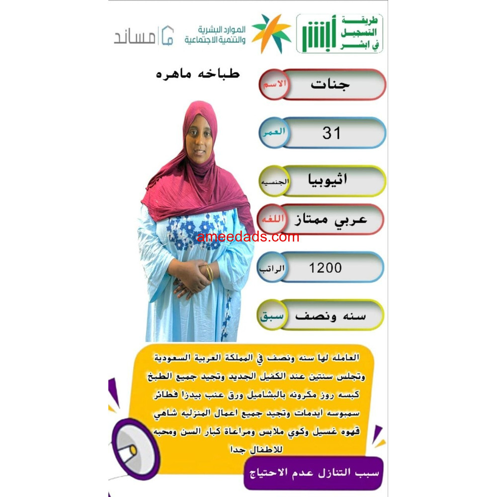 حياكم الله. حابب تتنازل عن خادمتك: مكتب أجياد الهناء في خدمتكم نستقبل عاملات من الفلبين وبنجلاديش كينيا وتعويض خسائر الاستقدام او التنازل نستقبل العماله المنزليه للتنازل بأفضل التعويض نعمل علي مساعدتك في البحث عن رب أسرة جديد للعامله نعمل وفق قوانين مكتب العمل بعقود رسميه نتحمل المصاريف المعيشة خلال فترة تواجدها فى المكتب *كما يوجد عاملات من اوغندا كينيا إثي...