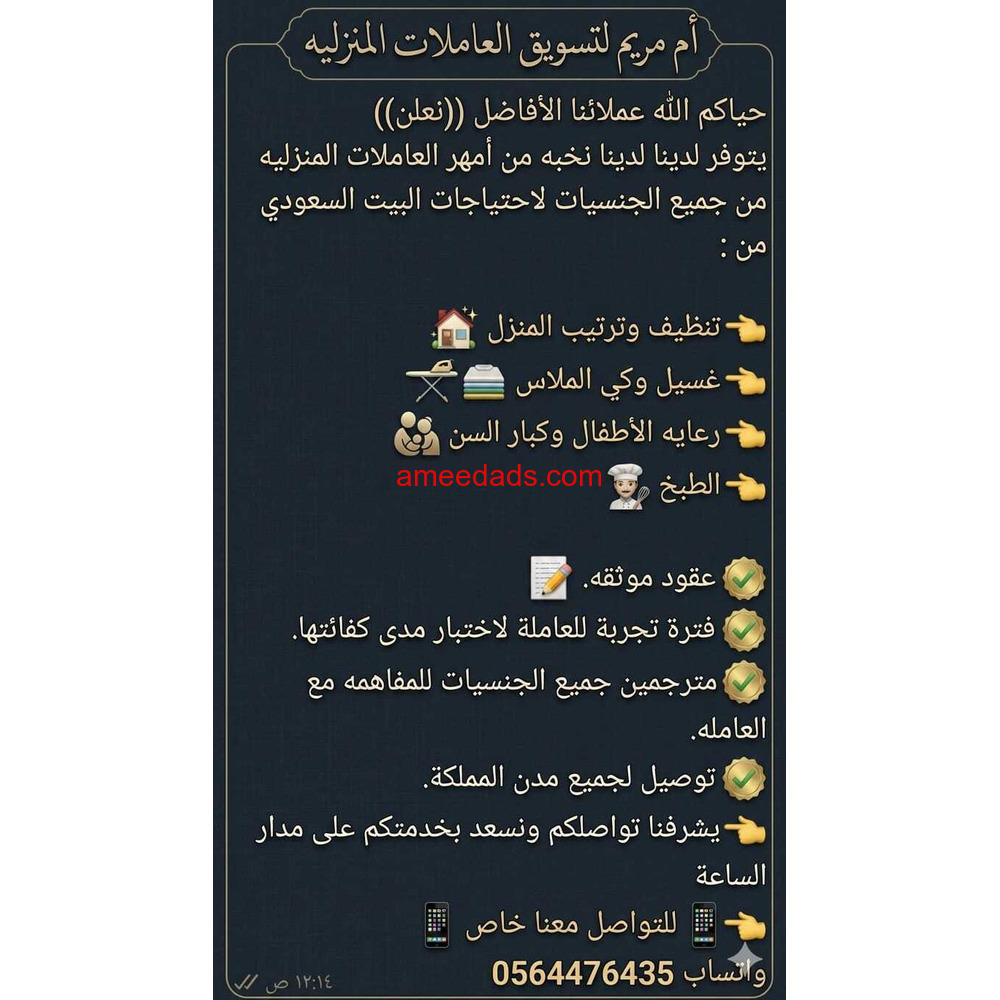متوفر جميع الجنسيات بأسعار مناسبة جداً بأفضل مكاتب بالمملكة العربية السعودية